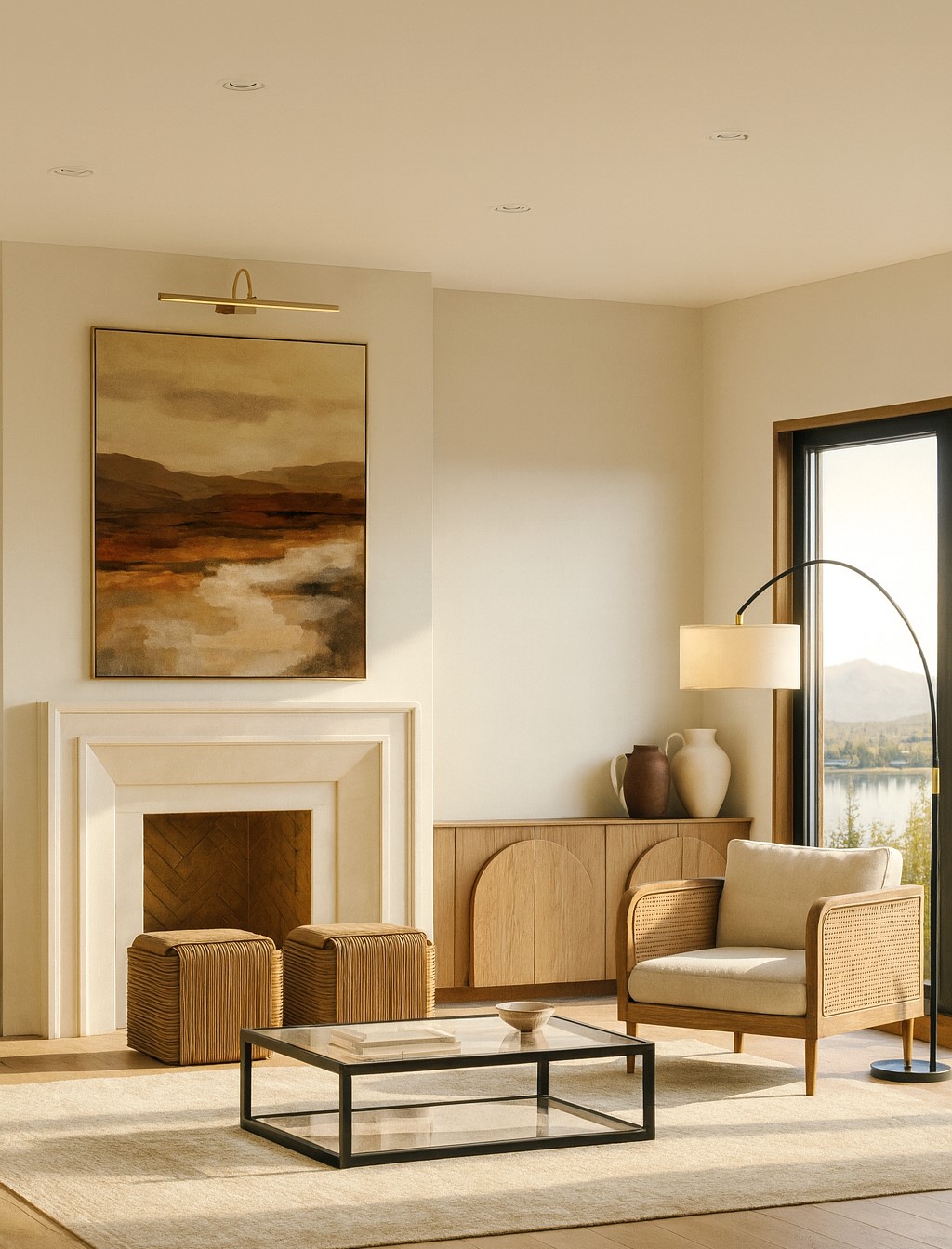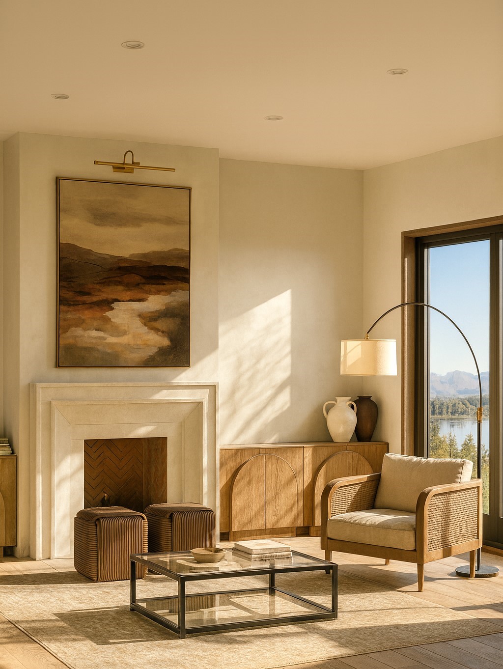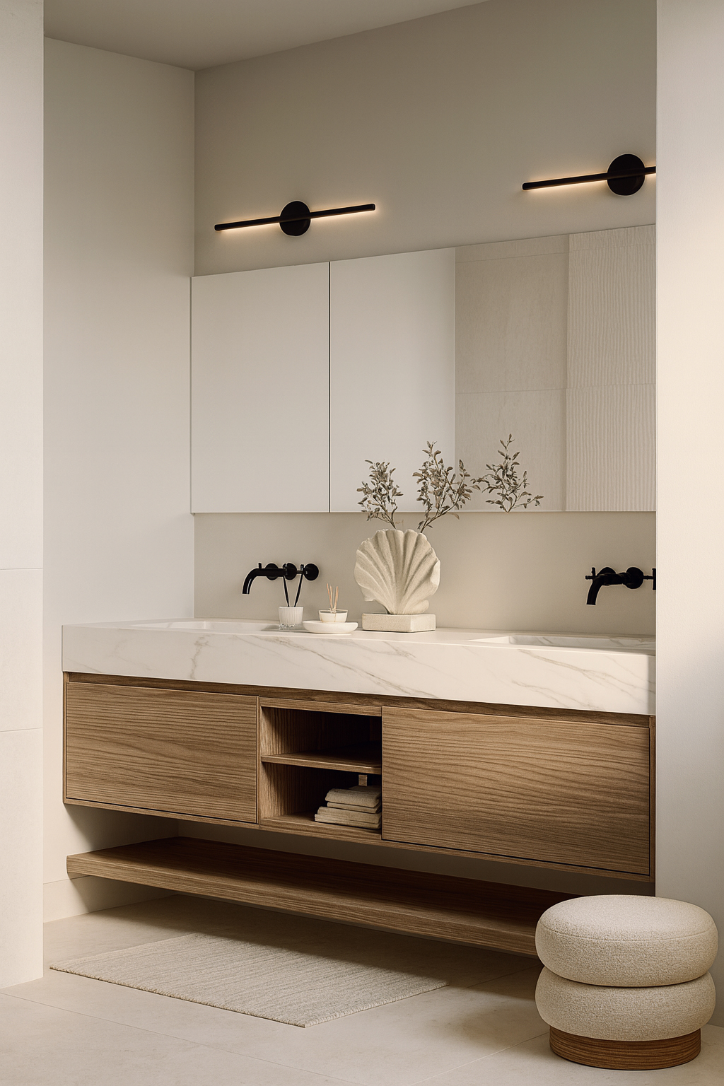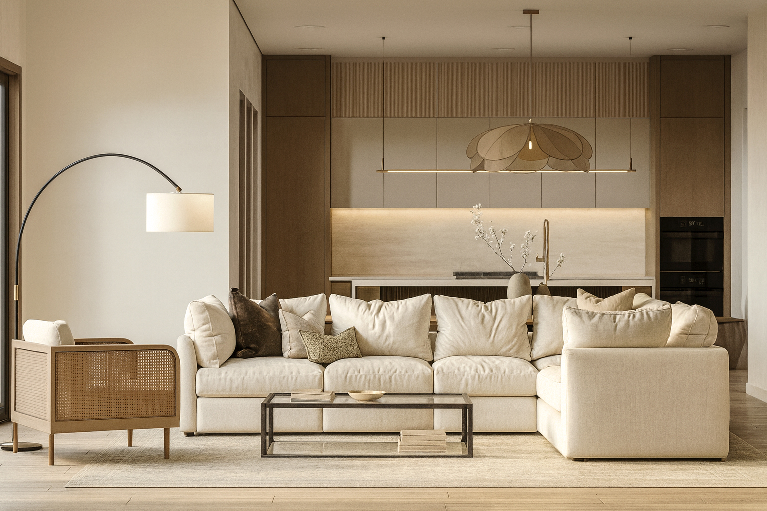 This project combines the warmth of natural materials with the simplicity of modern lines. Light tones and wooden details create a serene atmosphere, while minimal furniture and soft textures add comfort. Lighting and decorative elements bring natural balance, with functionality and timeless aesthetics standing out in the kitchen and bathroom.